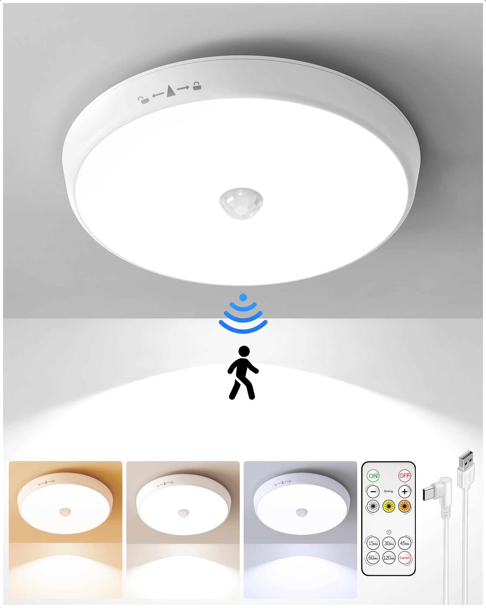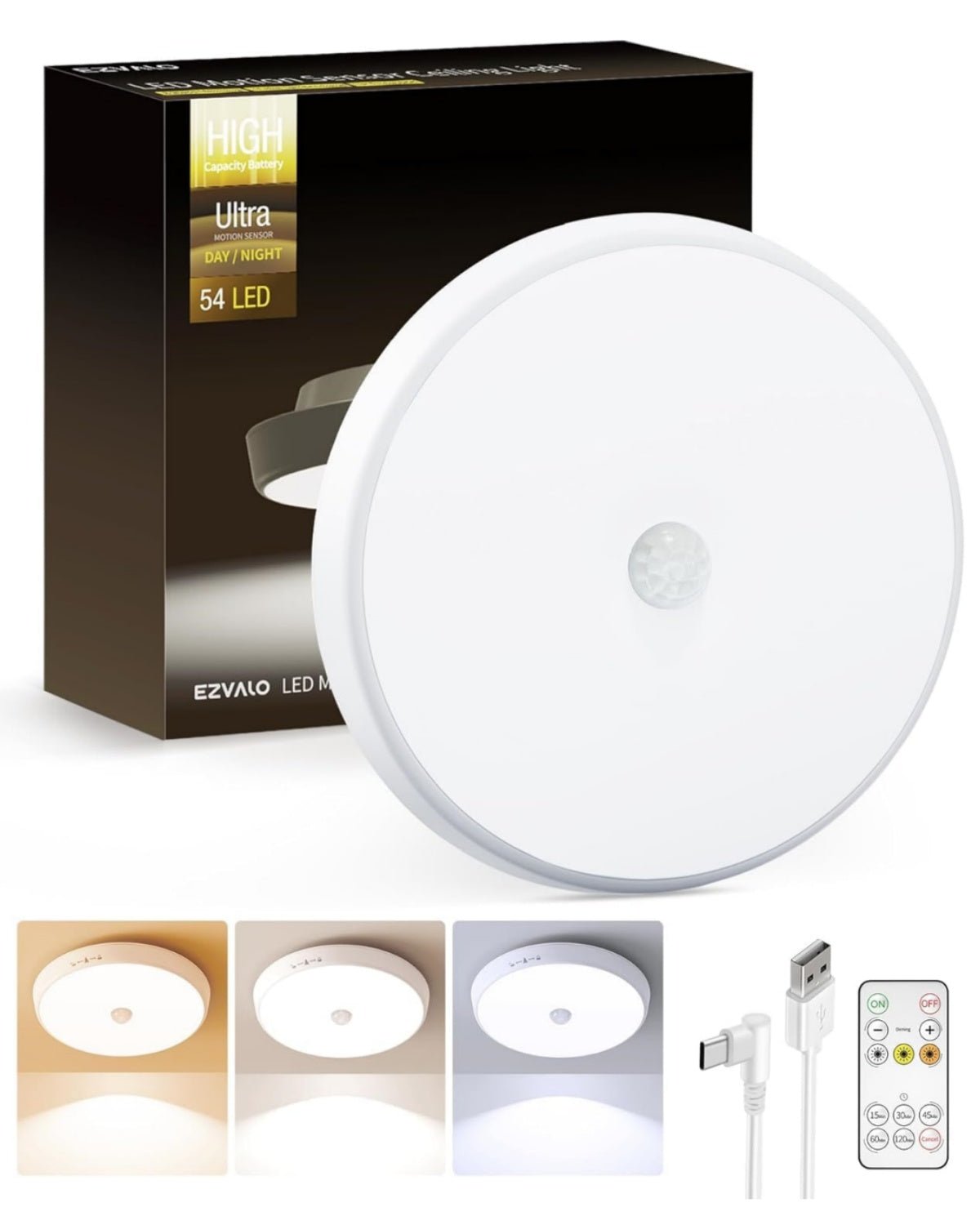 Motion Sensor Light Indoor, 2 - Pack, 10000mAh, 7.1inch, 400LM, Remote Control, Dimmable, LED, Flush Mount, Wireless, Rechargeable, Battery Operated, Cordless, Ceiling Light, Closet Light, No Wiring - EZVALO Motion Sensor Light Indoor, 2 - Pack, 10000mAh, 7.1inch, 400LM, Remote Control, Dimmable, LED, Flush Mount, Wireless, Rechargeable, Battery Operated, Cordless, Ceiling Light, Closet Light, No Wiring - EZVALO